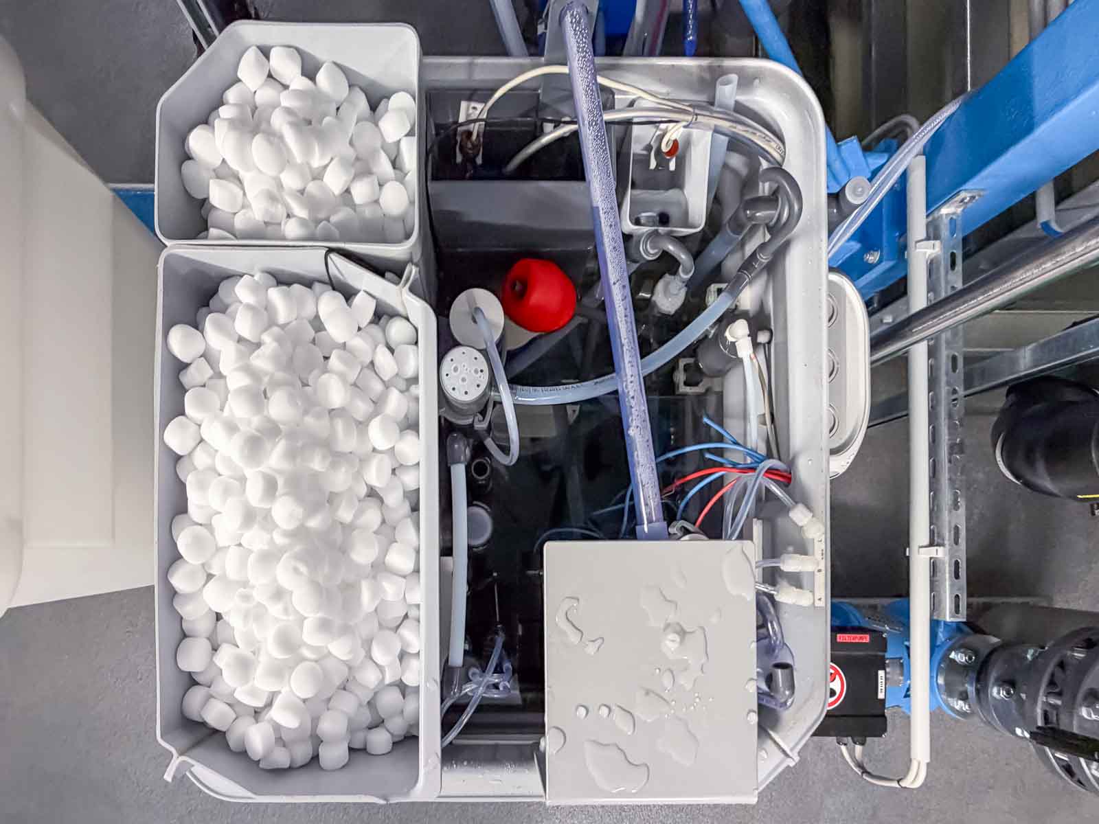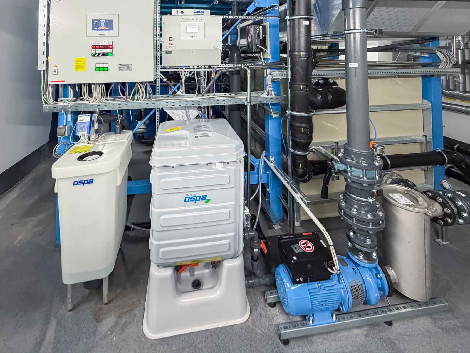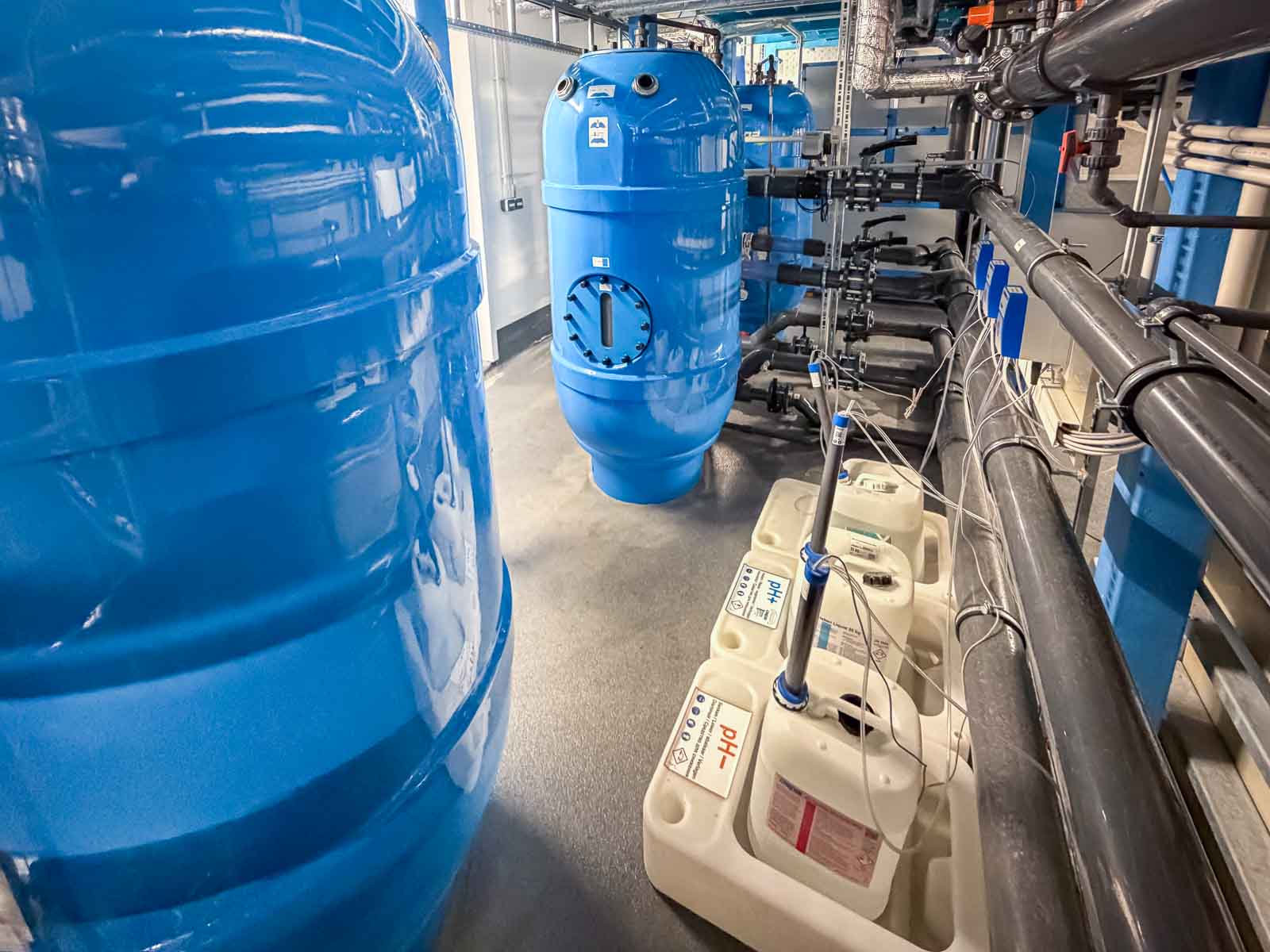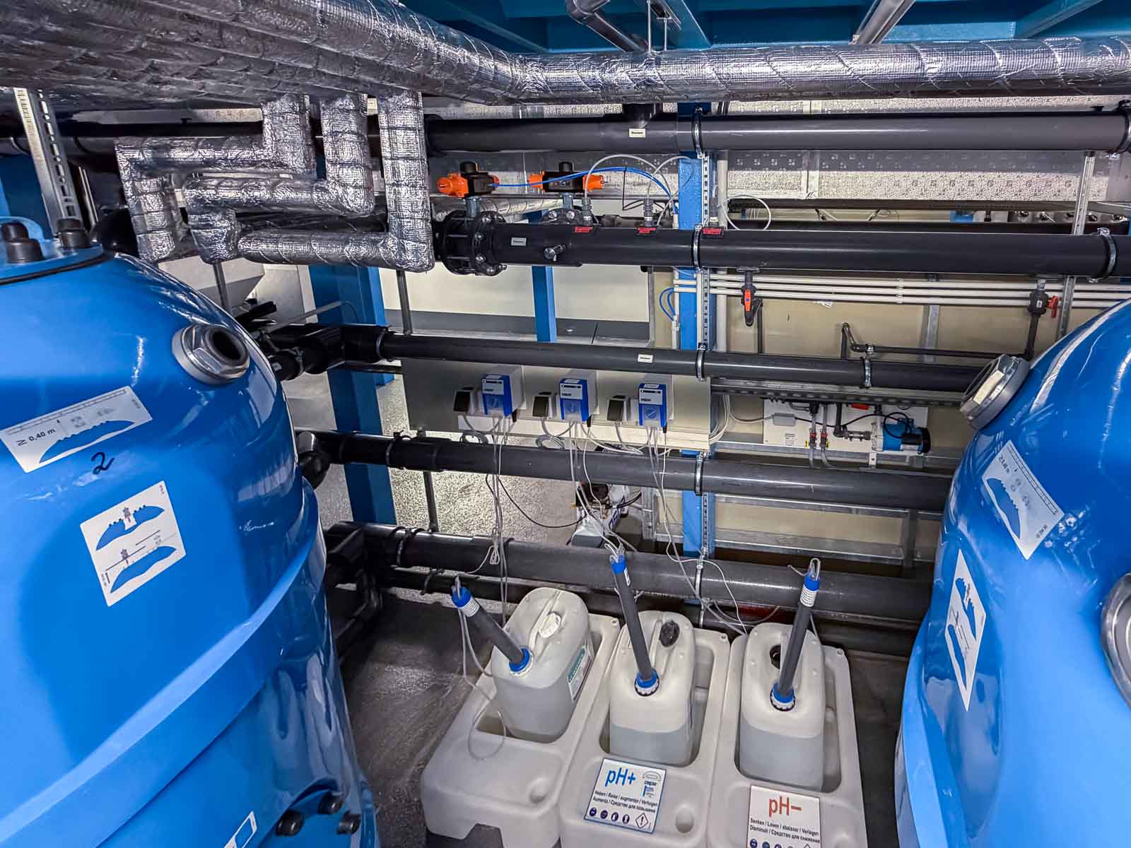 Besondere Aufmerksamkeit galt der materialgerechten Ausführung aller mit Sole in Berührung kommenden Komponenten sowie der exakten Regelung der Wasserparameter. Die Anlagentechnik sorgt für eine gleichmäßige Wasserführung, konstante Temperaturverhältnisse und eine dauerhaft hohe Wasserqualität.