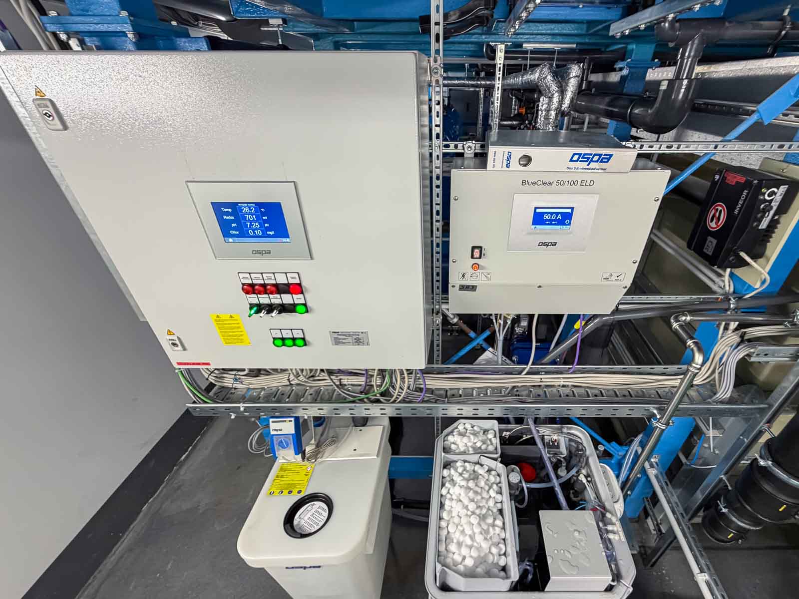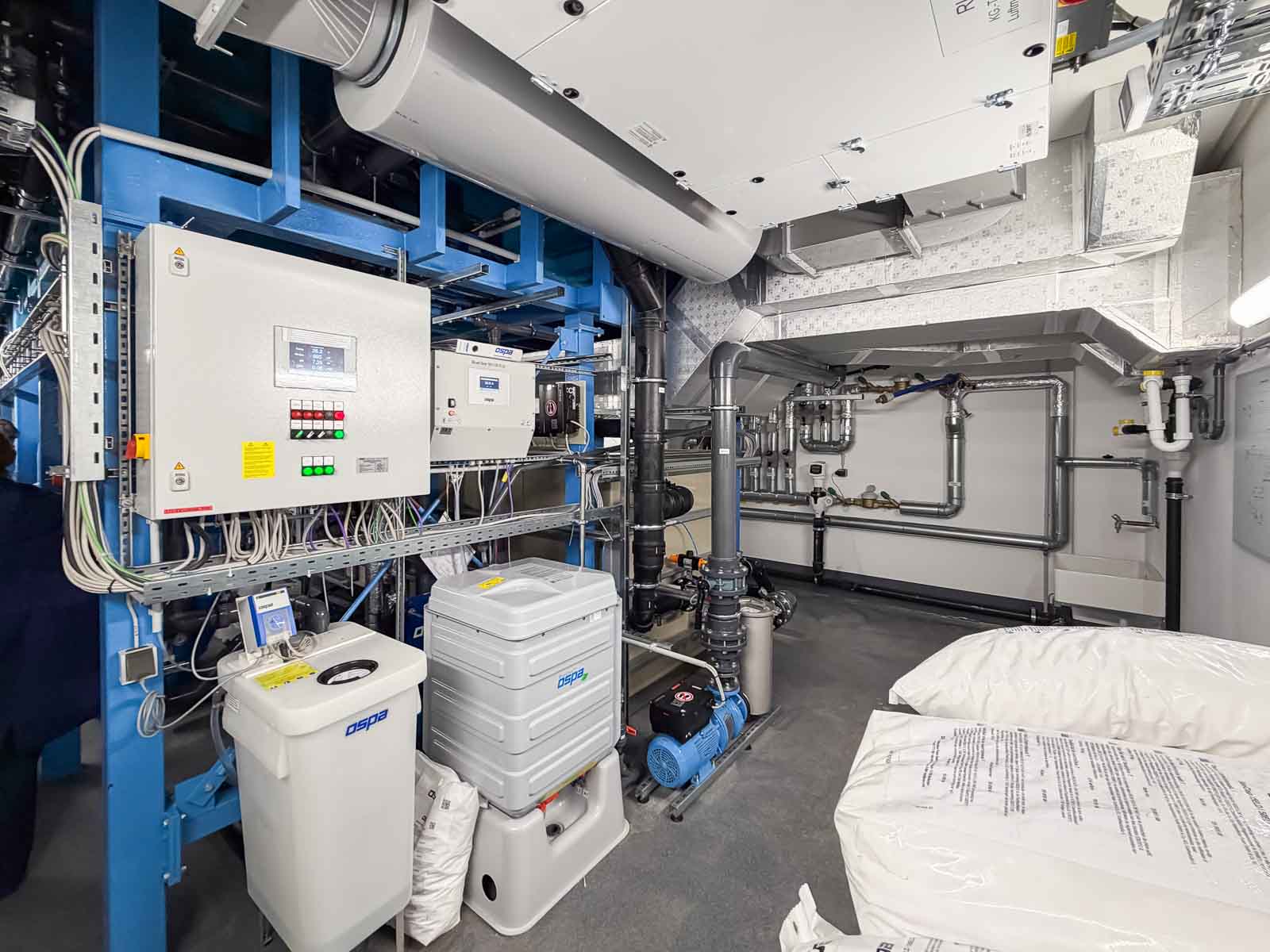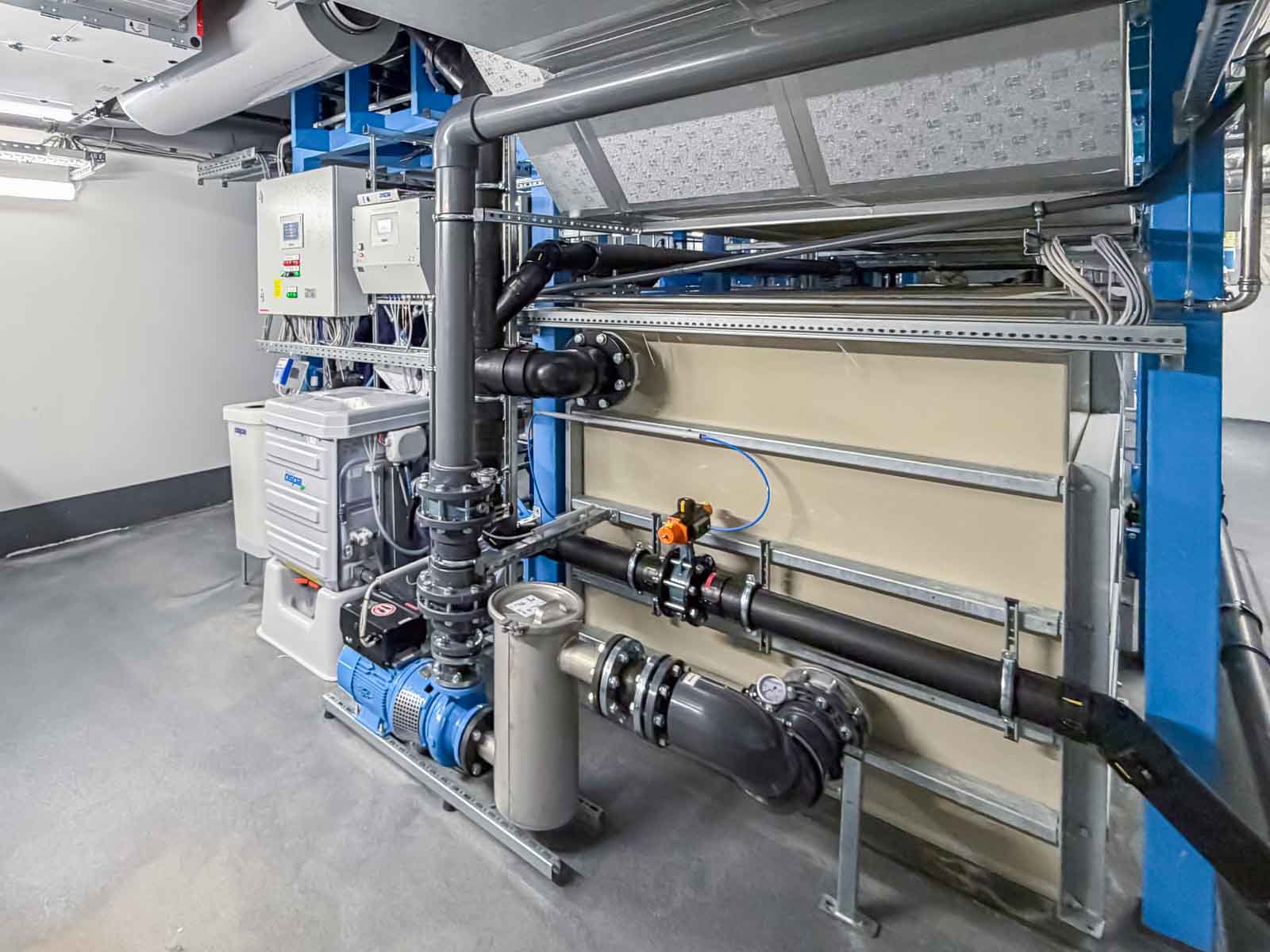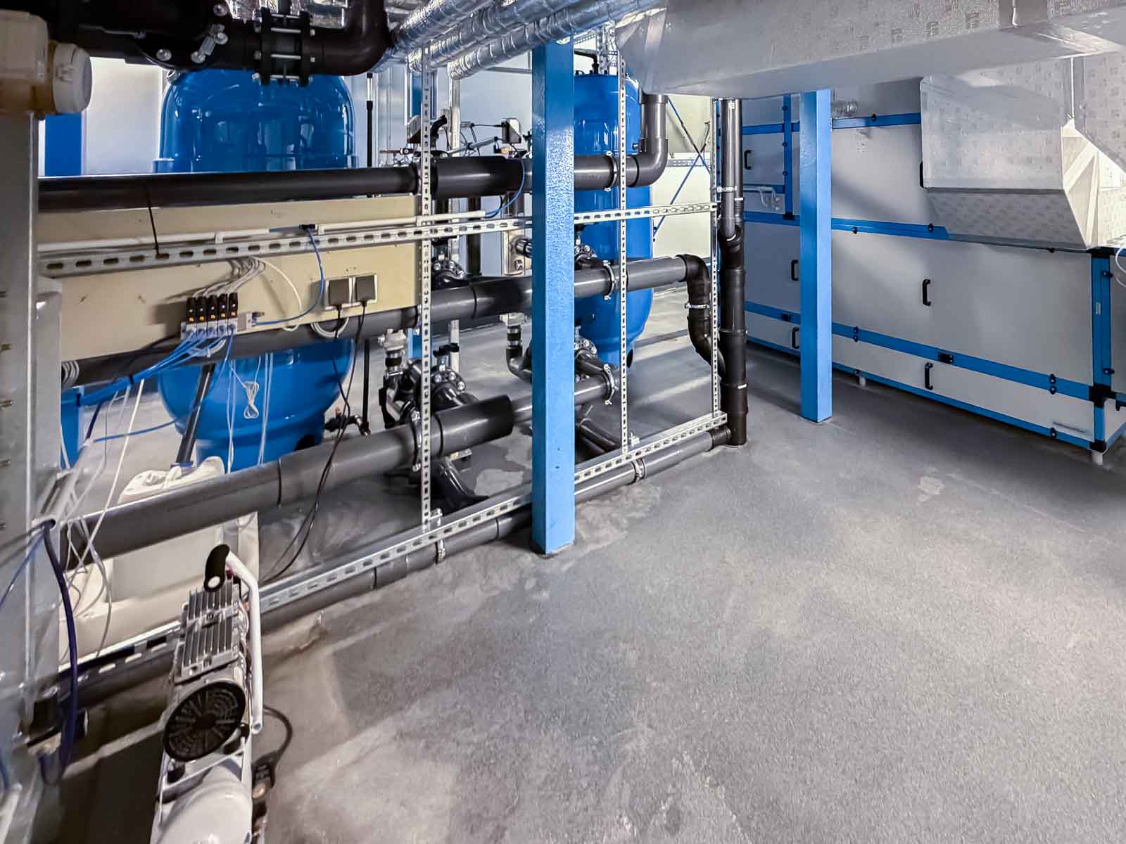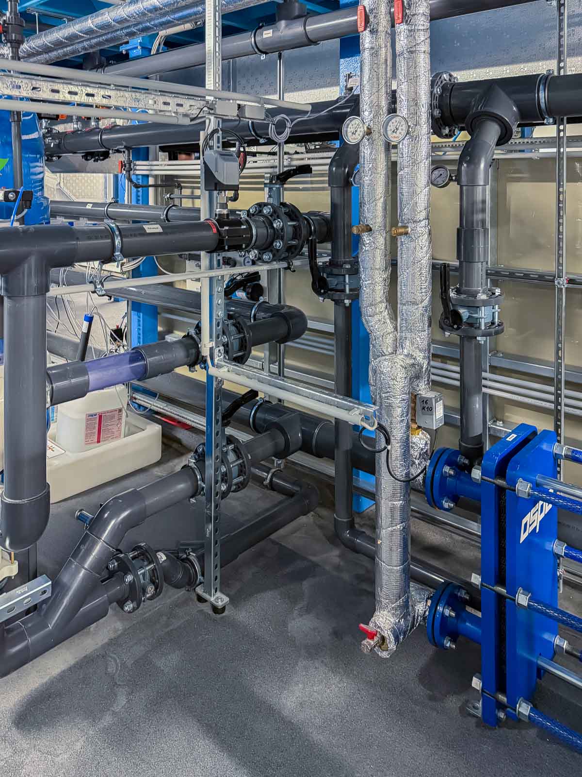 Die technische Auslegung der Anlage wurde konsequent auf den Betrieb eines medizinisch genutzten Sole-Bewegungsbeckens abgestimmt. Systeme zur Wasseraufbereitung, Filtration, Desinfektion und Temperaturführung arbeiten präzise aufeinander abgestimmt und gewährleisten dauerhaft stabile und hygienisch sichere Betriebsbedingungen.